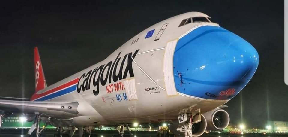 Cargolux have painted a special livery on one of their 747’s. (LX-VCF) It shows a 747 wearing a mask.