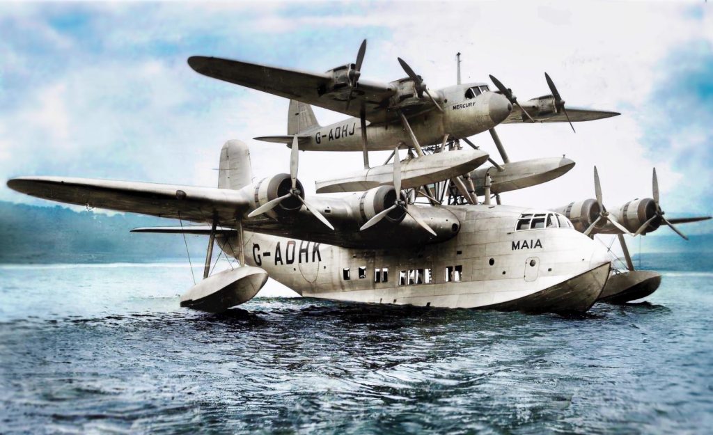 Meanwhile, in England, the boffins of Short Brothers, a firm specialising in flying boats, were meditating the same problem when Robert H. Mayo, Technical Manager at Imperial Airways, suggested a novel solution. Why not launch a transatlantic aeroplane not from a shipborne catapult, but from a larger aeroplane already in flight?