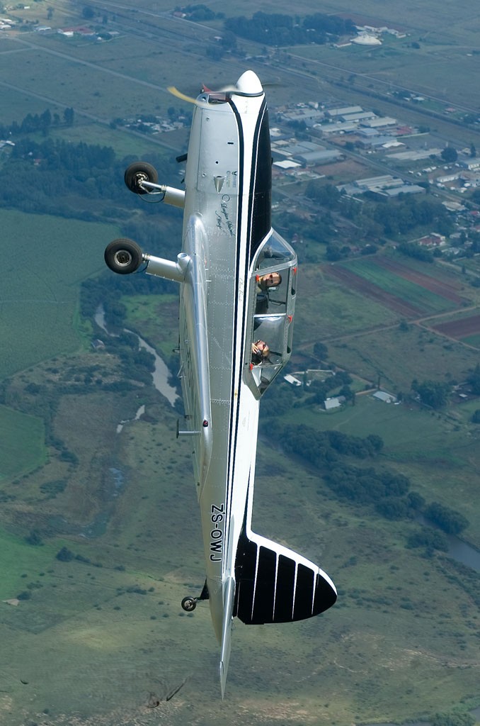 Someone who has competitively flown aerobatics in the Chippy is Elton Bondi, who says, “When I wrote an SA Flyer article about the Chipmunk, I commented at how ‘well balanced, light and responsive’ the controls were. Contrary to what one may expect, basic aerobatics are easier to fly in the Pitts than in the Chipmunk, for a number of reasons. First, the Pitts has an inverted fuel and oil system, along with a dramatically improved power to weight ratio over the Chipmunk. This means that in a stall turn for example, with the Pitts you have time to set up and draw an accurate vertical line before waiting for that ideal moment to yaw the aircraft over with the effective rudder. With the Chipmunk one barely has enough energy to get the aircraft nearly vertical before the speed runs out. And one dare not get perfectly vertical or else the engine may quit because it has no inverted fuel feed. Because of its slow roll rate, a pilot has to use plenty of rudder in a Chipmunk to ensure a coordinated roll or else you will ‘scoop the roll’ and loose height.